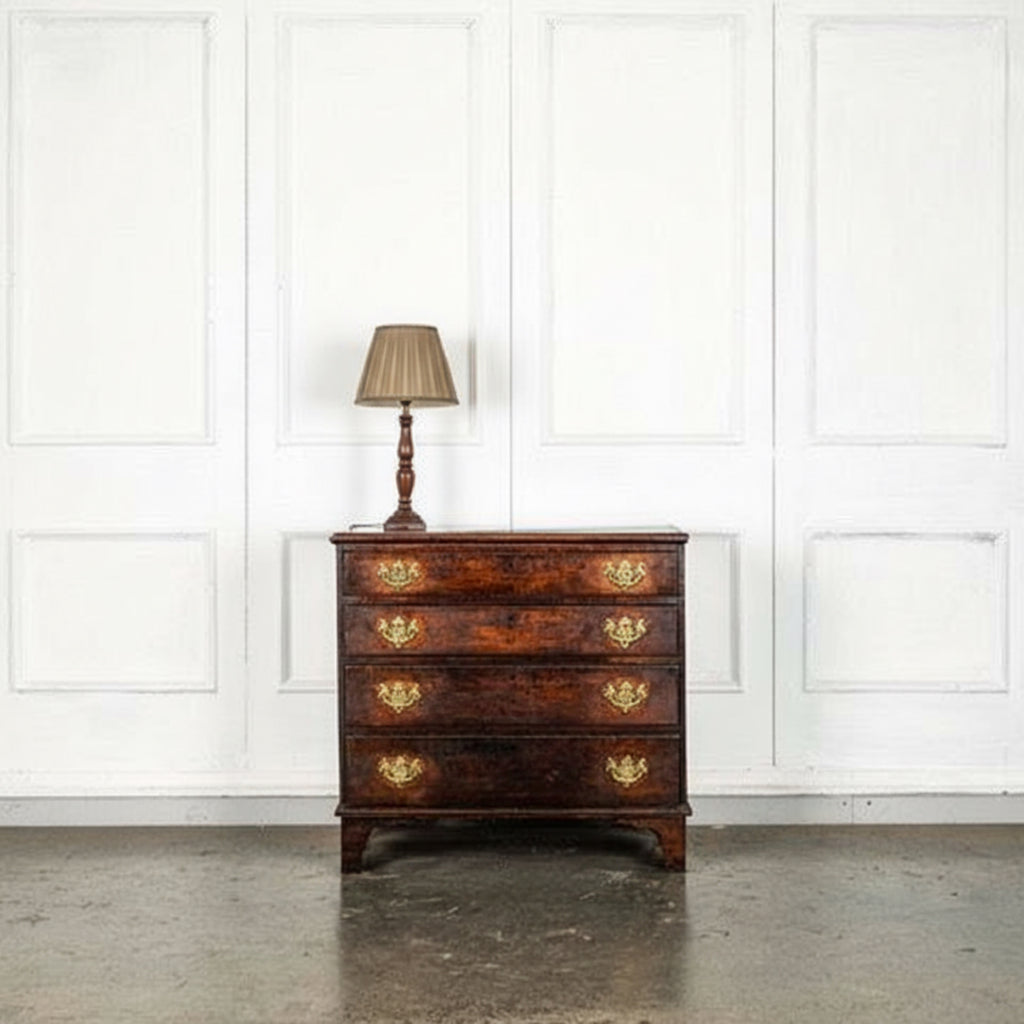 Georgian Oak Chest of Drawers.  A lovely country piece of beautiful proportions with  four graduated long oak lined drawers and attractive brass pull handles.