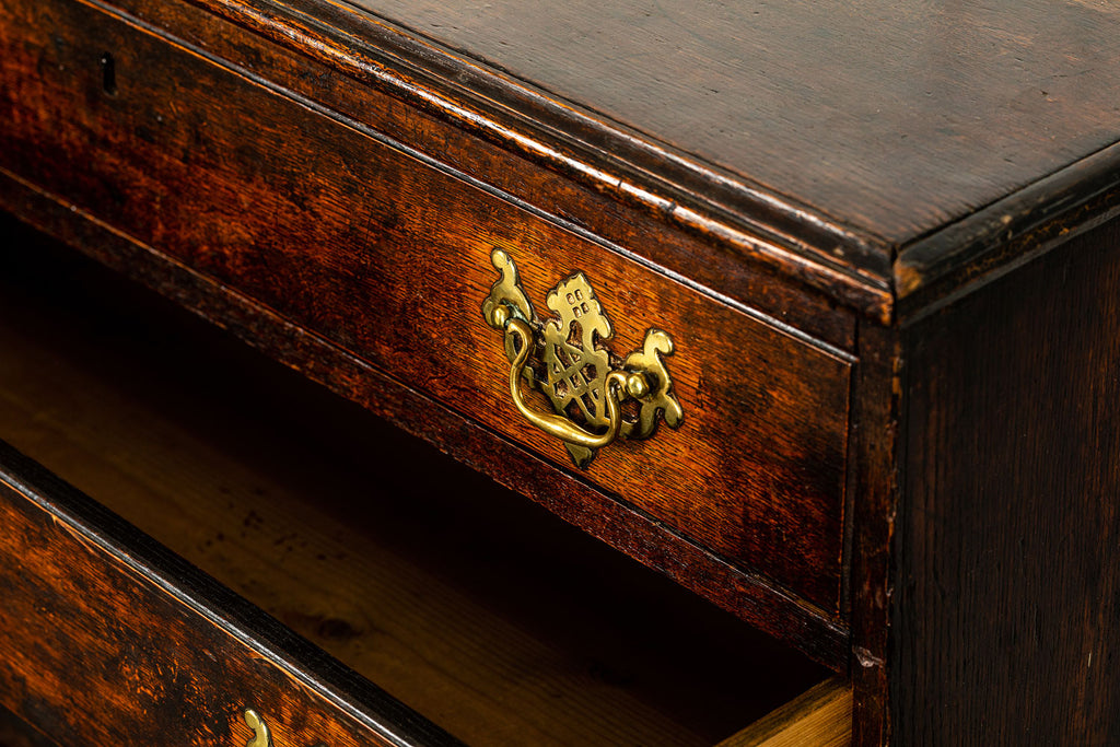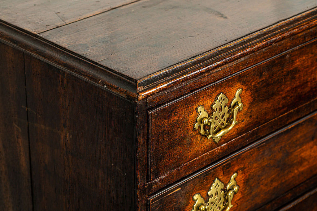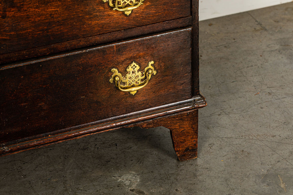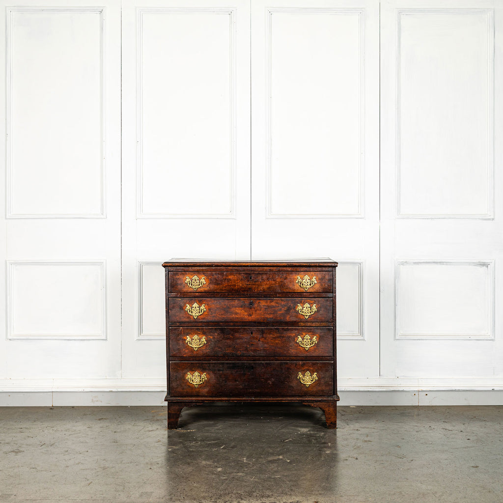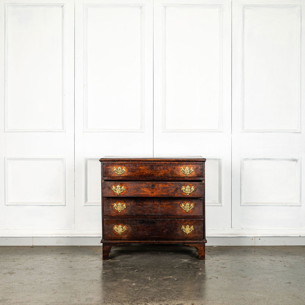 Georgian Oak Chest of Drawers. A lovely country piece of beautiful proportions with four graduated long oak lined drawers and attractive brass pull handles.