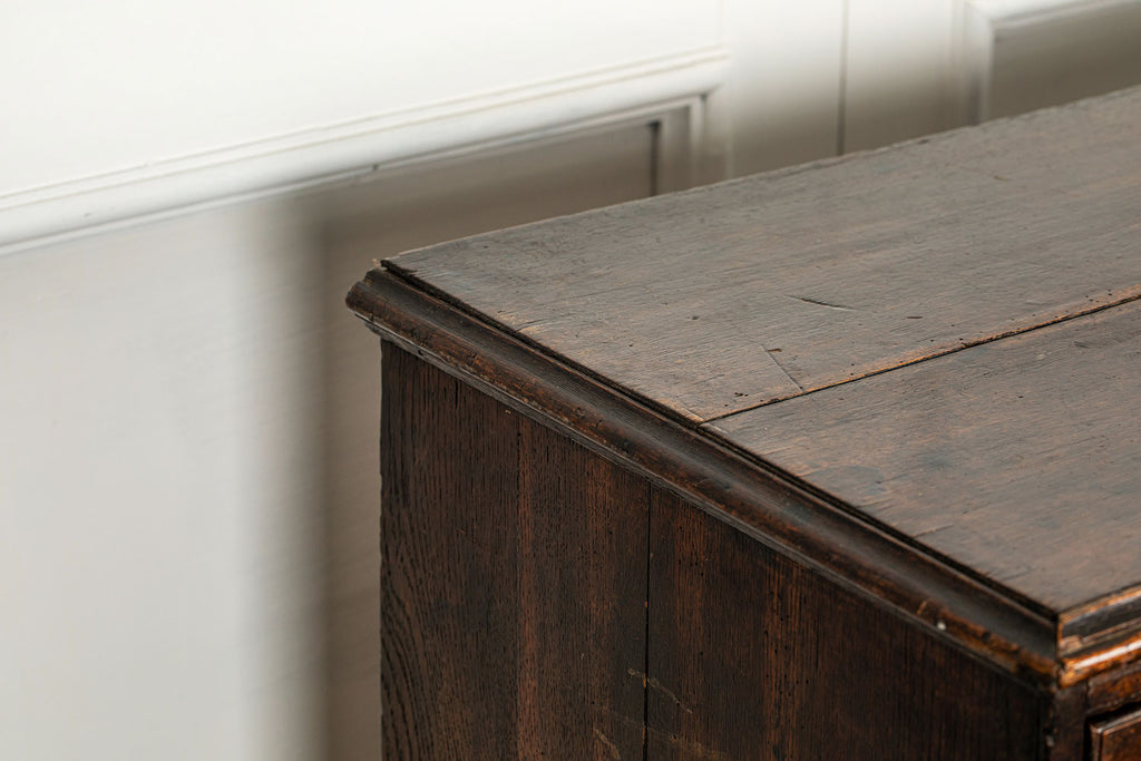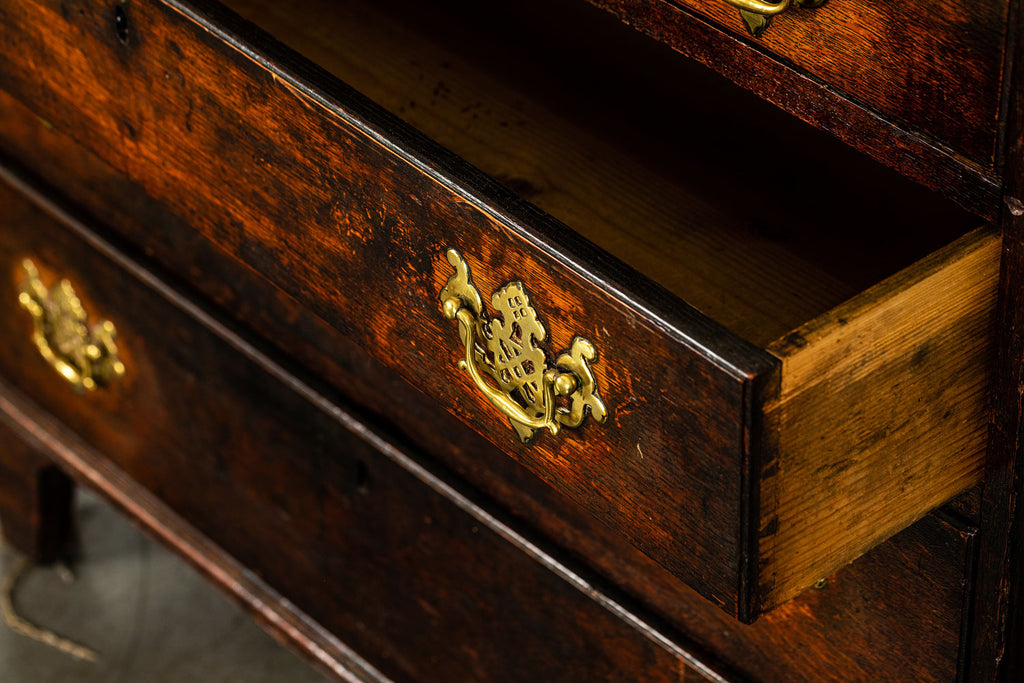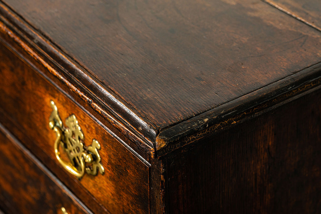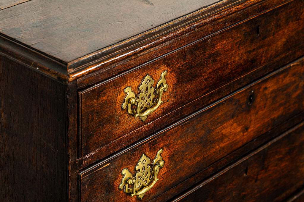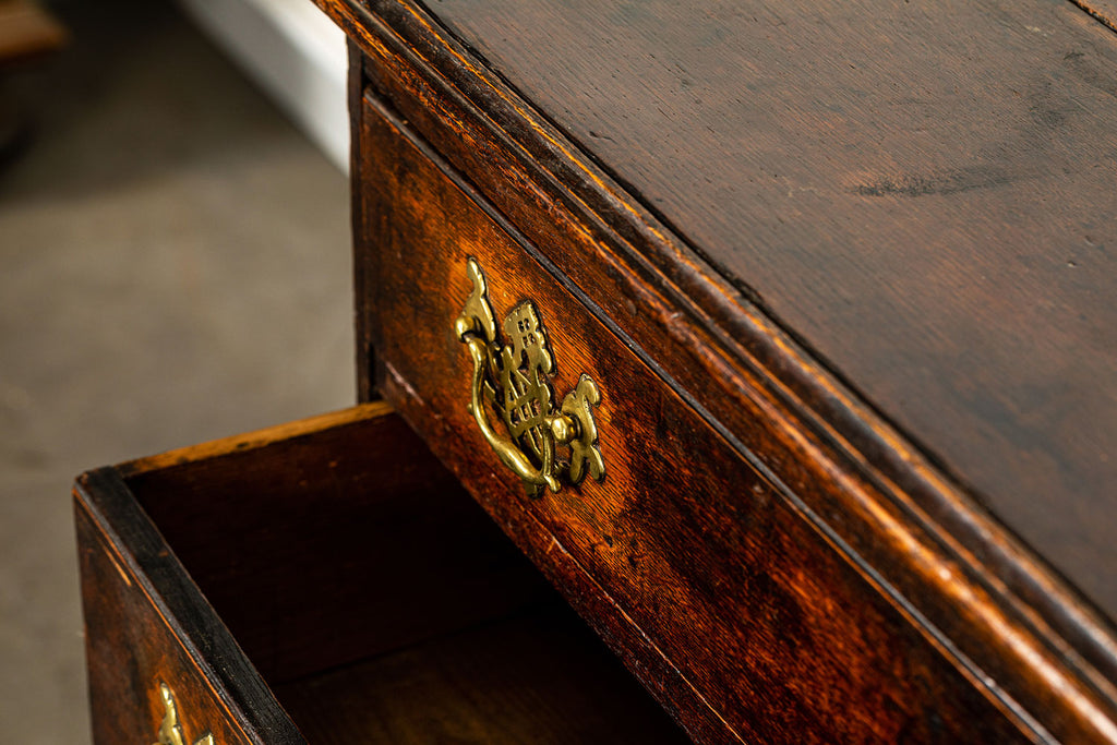 Georgian Oak Chest of Drawers. A lovely country piece of beautiful proportions with four graduated long oak lined drawers and attractive brass pull handles.