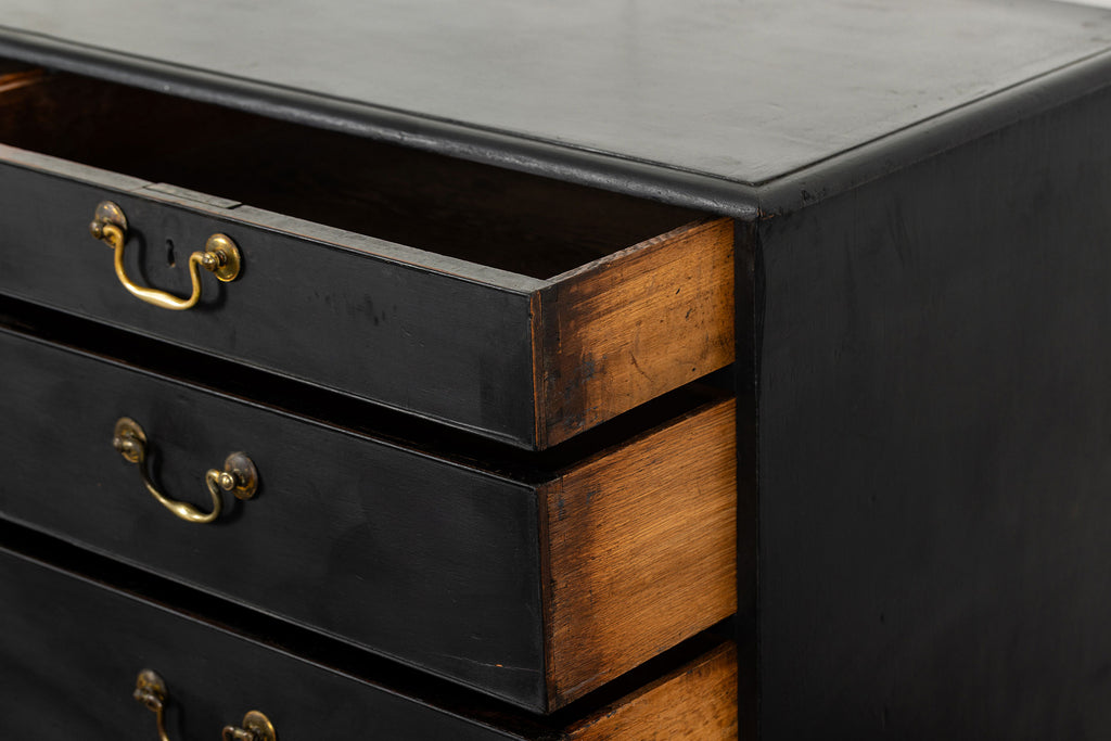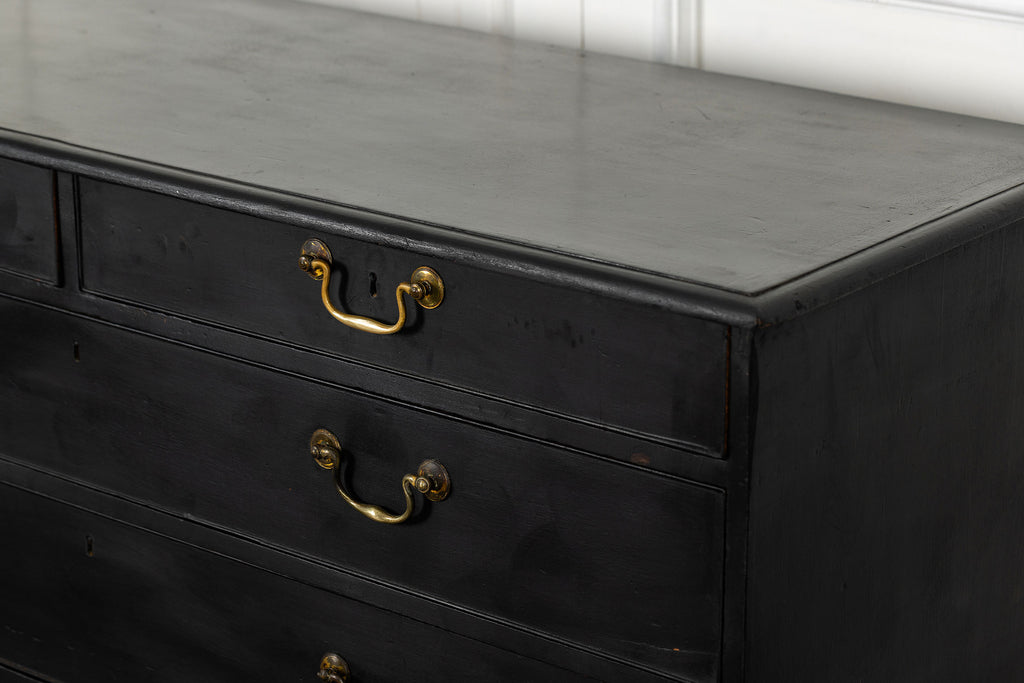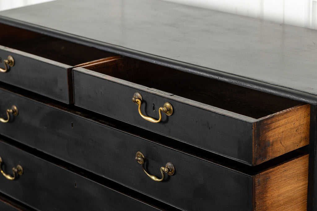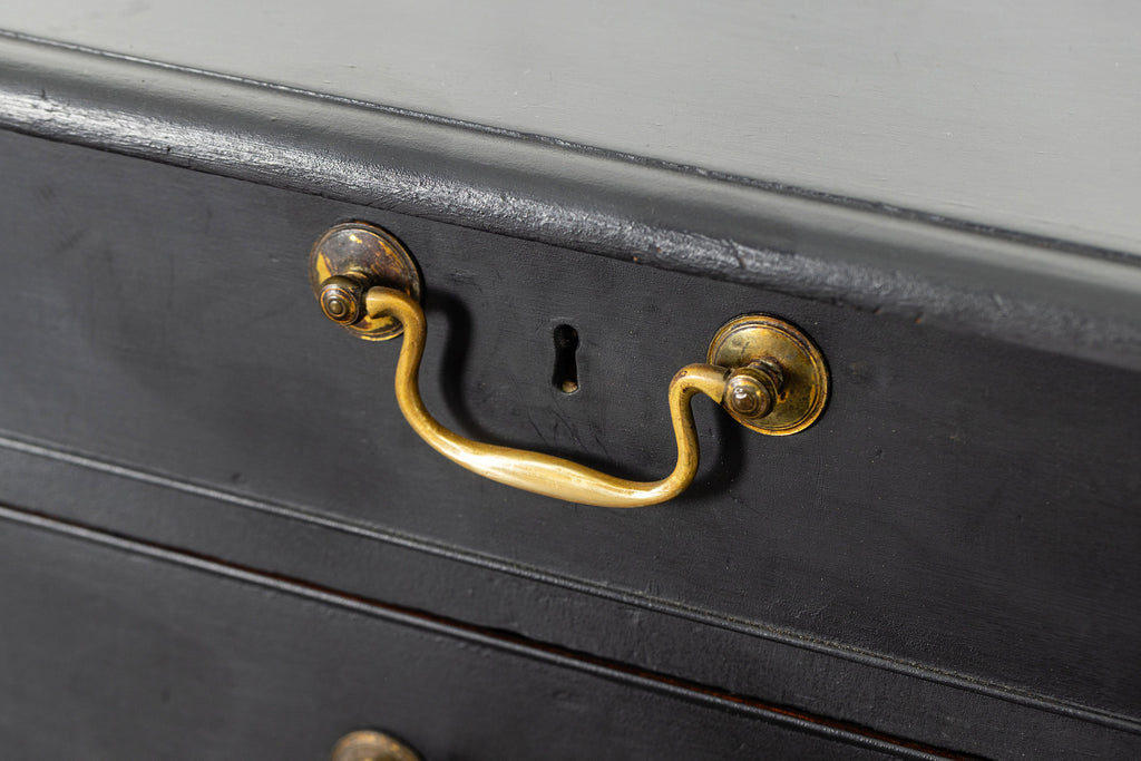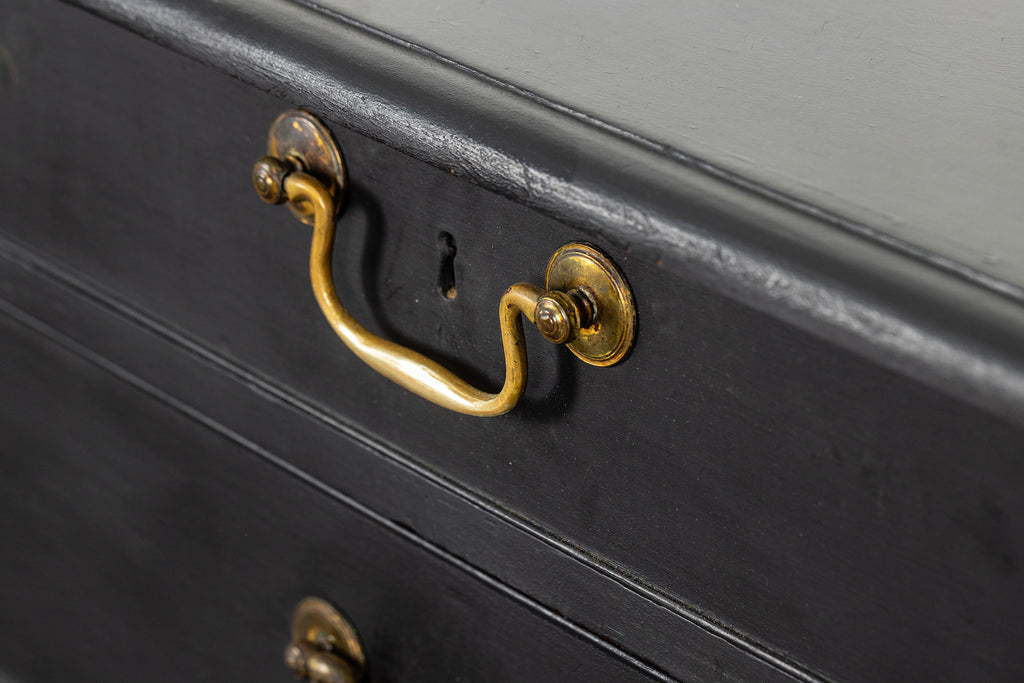 Lovely Georgian Ebonised chest of large proportions. Original ironmongery, locks and key.
