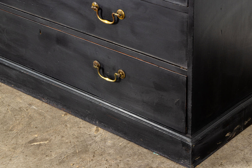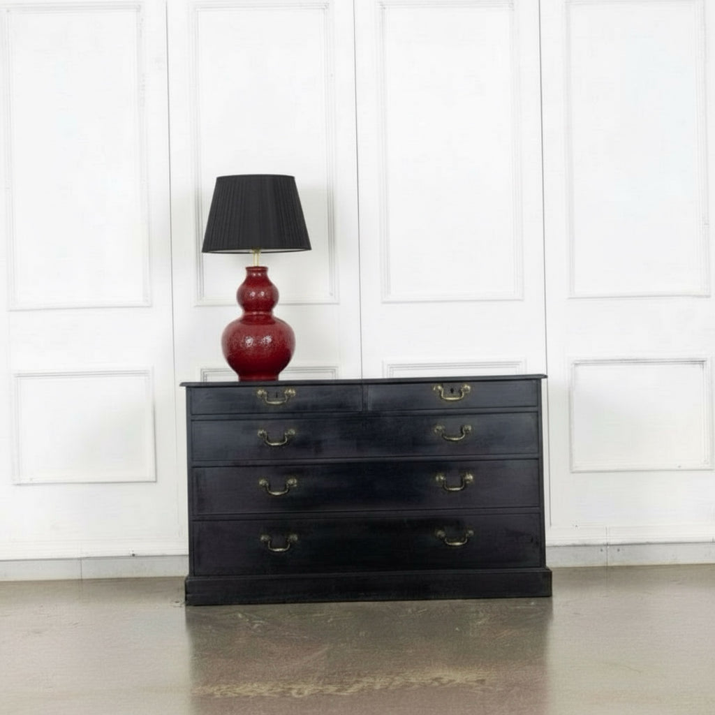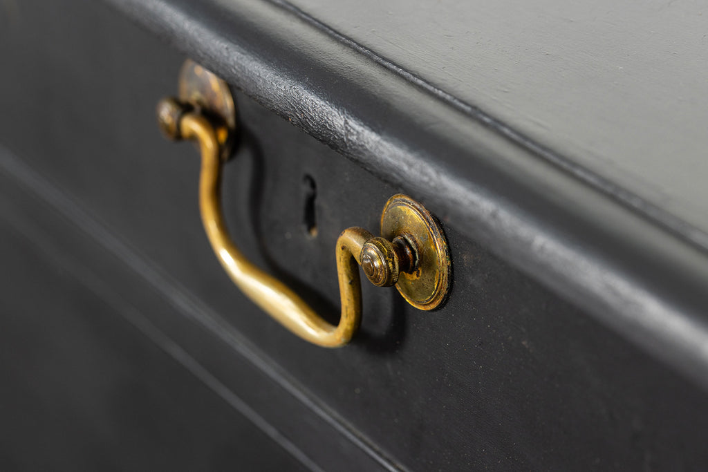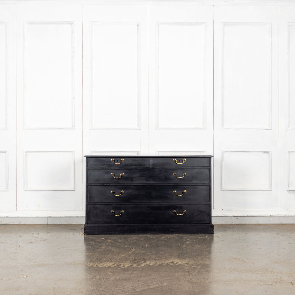Lovely Georgian Ebonised chest of large proportions. Original ironmongery, locks and key.