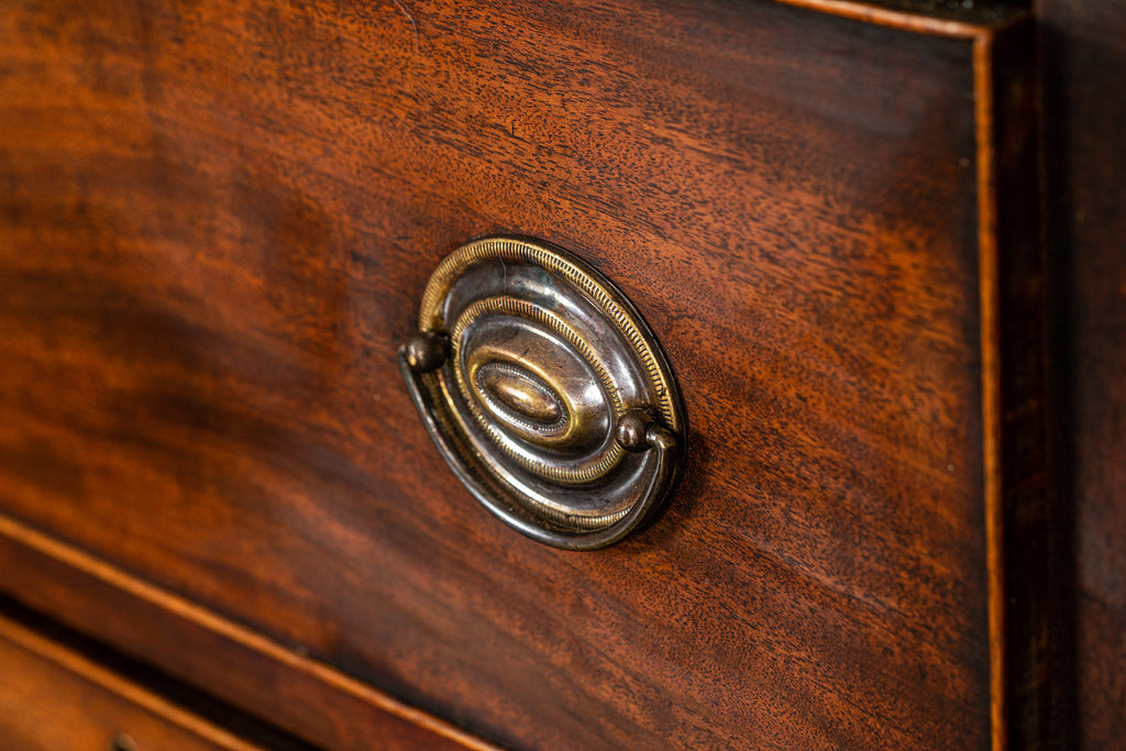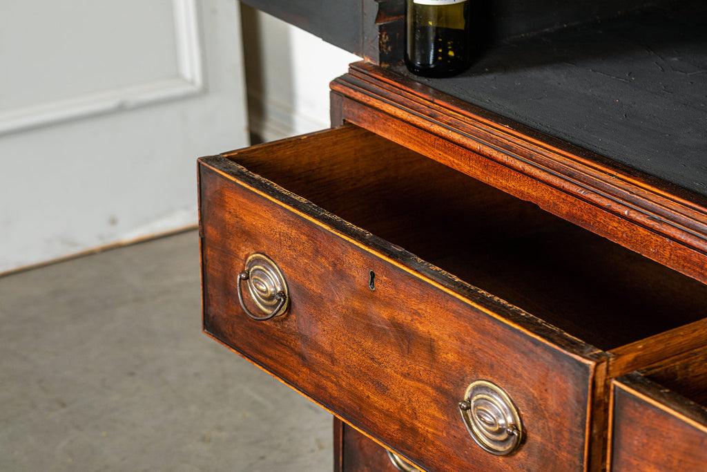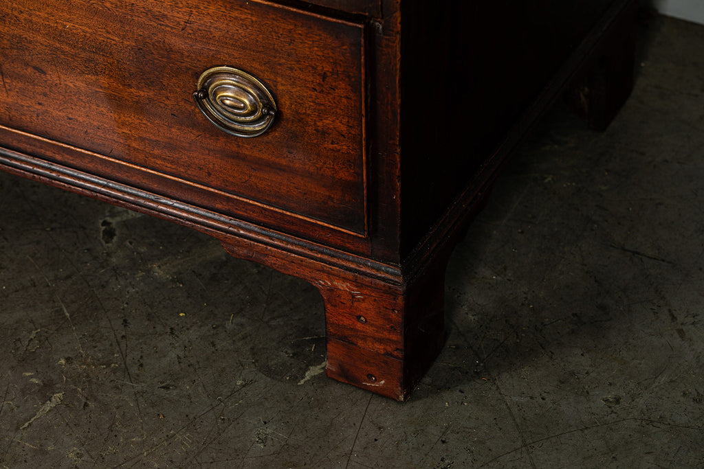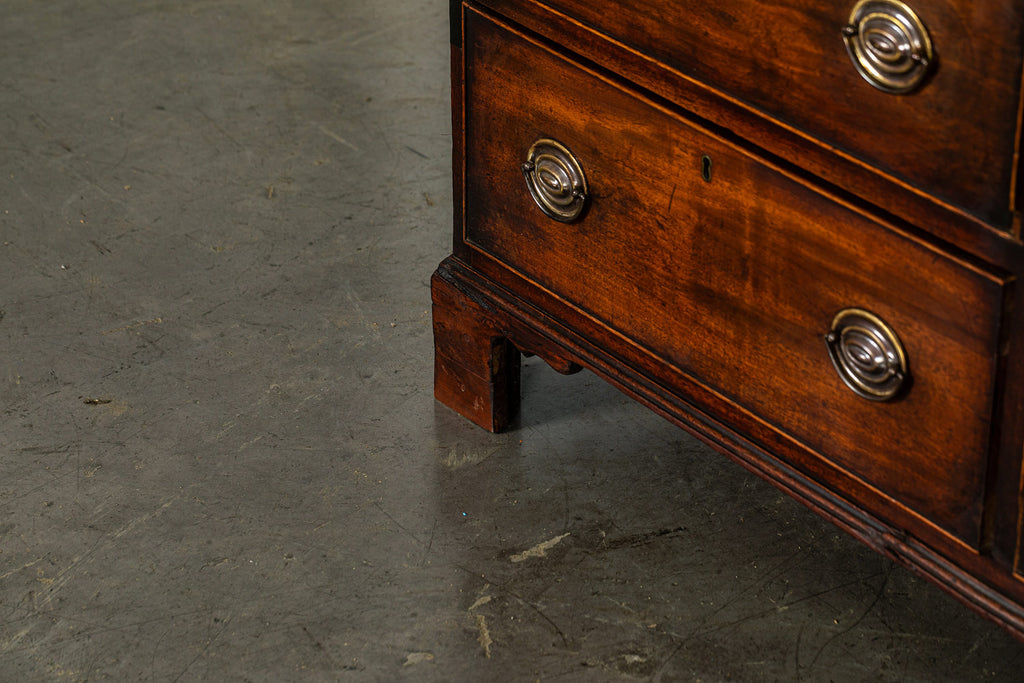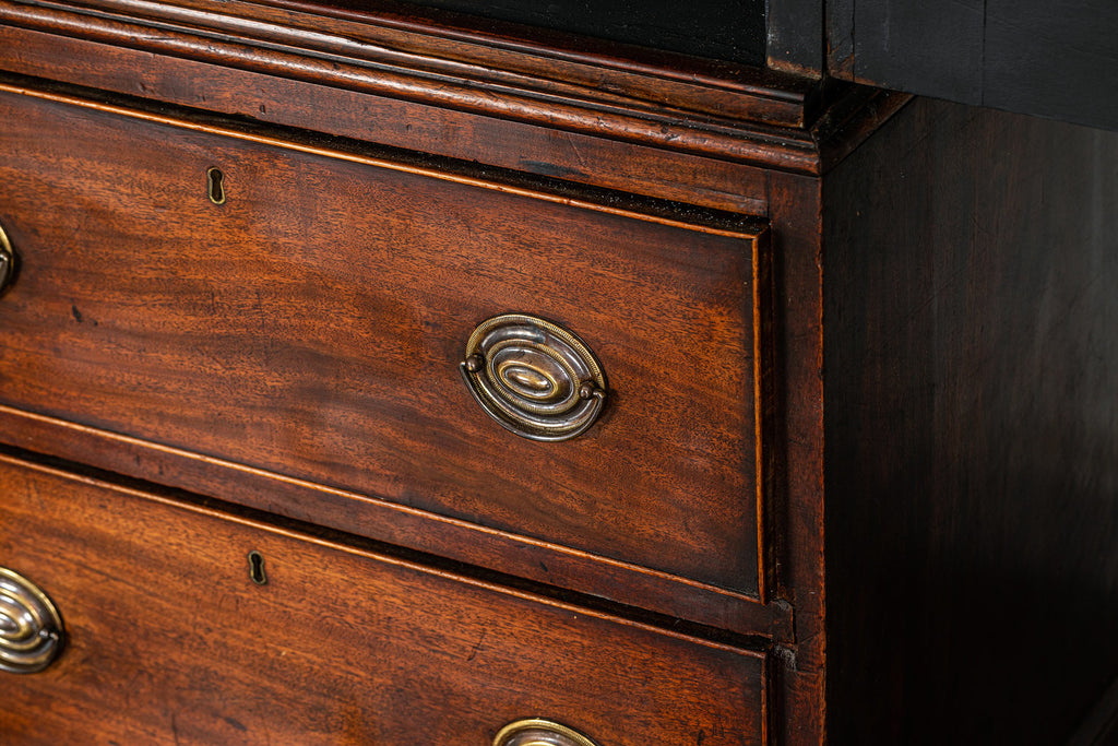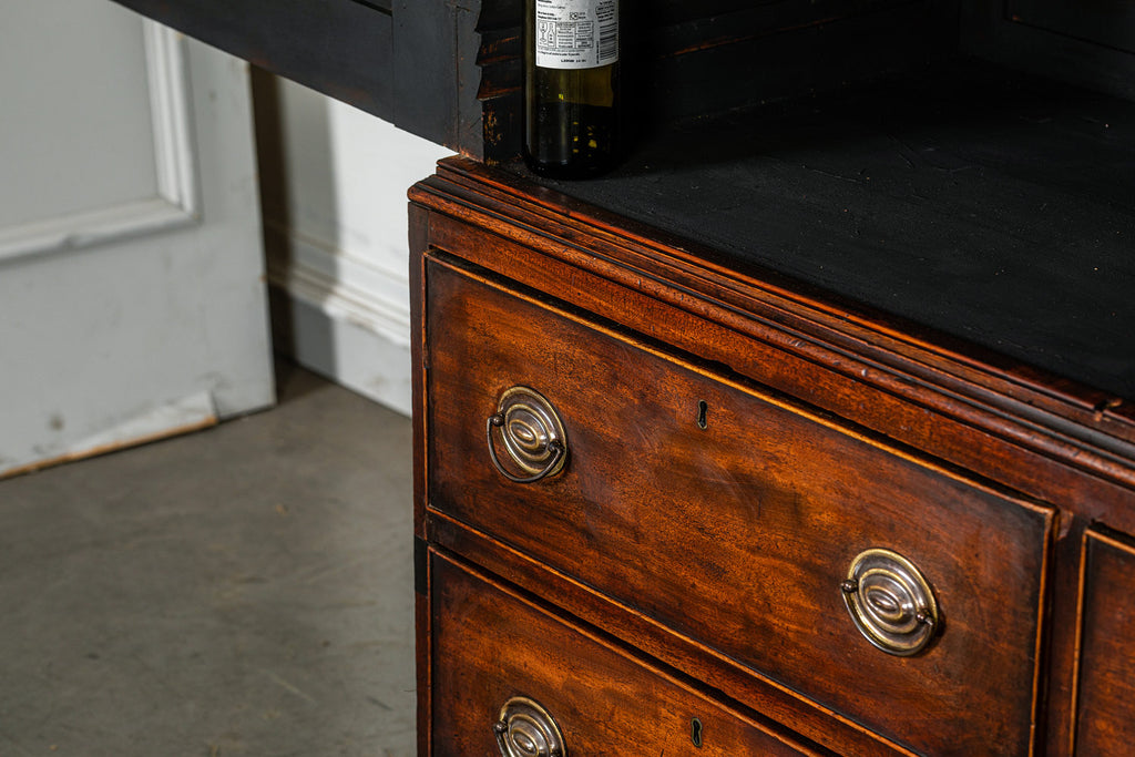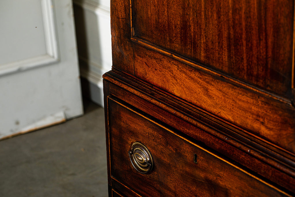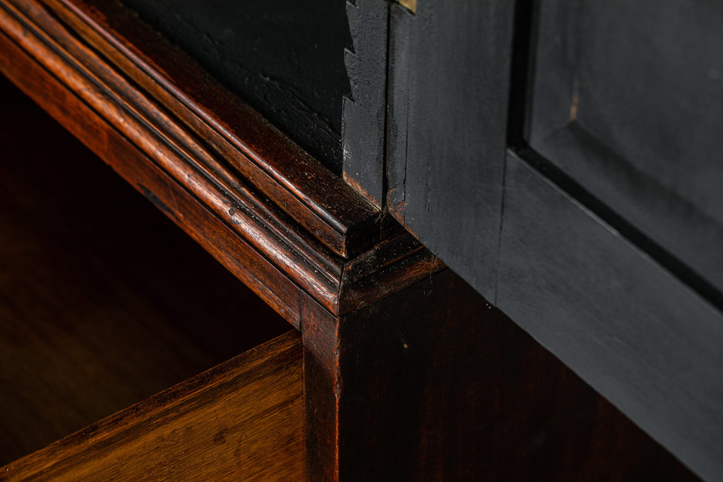 Wonderful George 111 mahogany linen press with broken swan neck architectural pediment, over a pair of rectangular panelled doors, enclosing a later painted and shelved interior - with period mahogany planks on bracket feet. A fabulous kitchen cupboard or storage space with a pile of style.