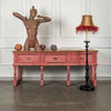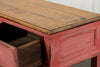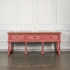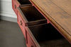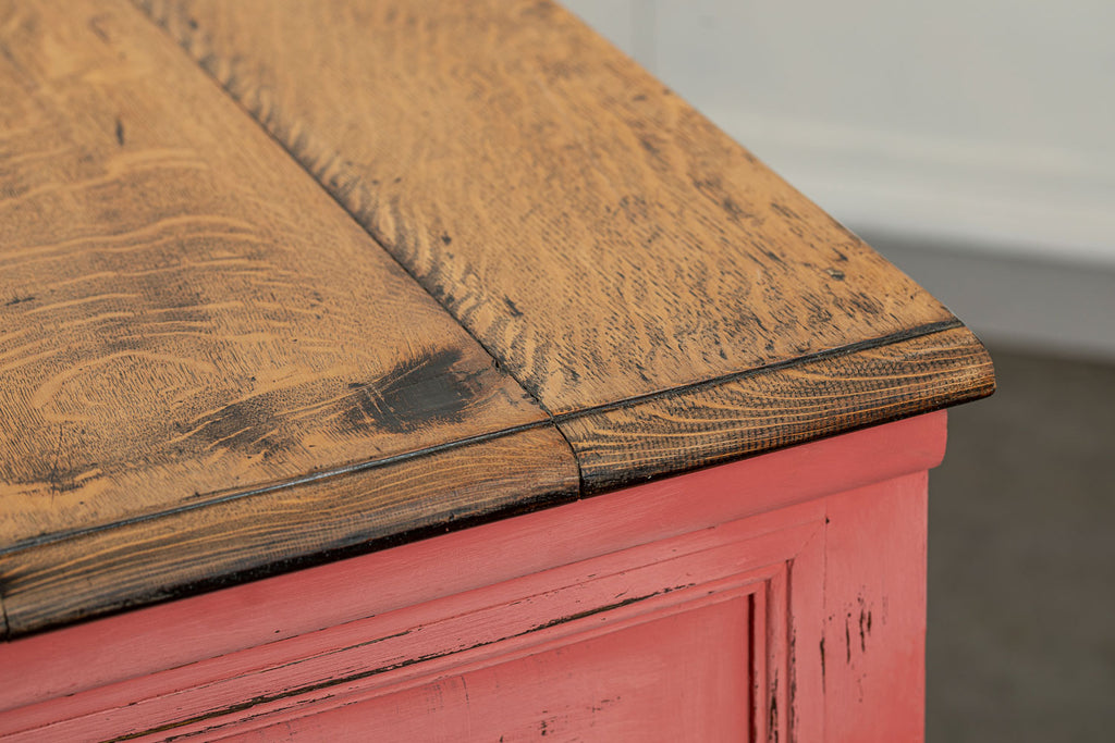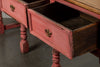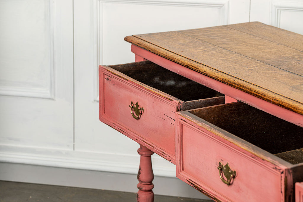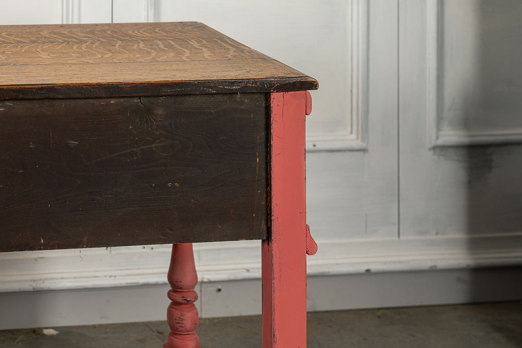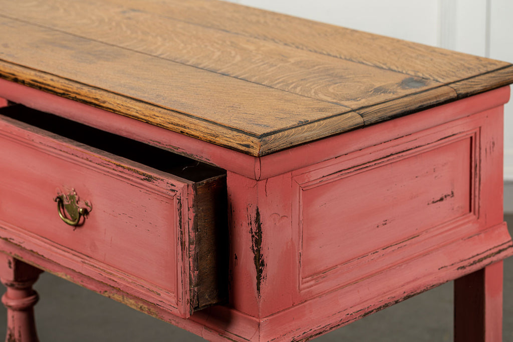 An 18th / 19th Century oak painted dresser base with three frieze drawers on turned legs. A well proportioned and strong piece of furniture offering a great work surface, manageable drawers and a beautiful presence. Good to look at, good to live with.
